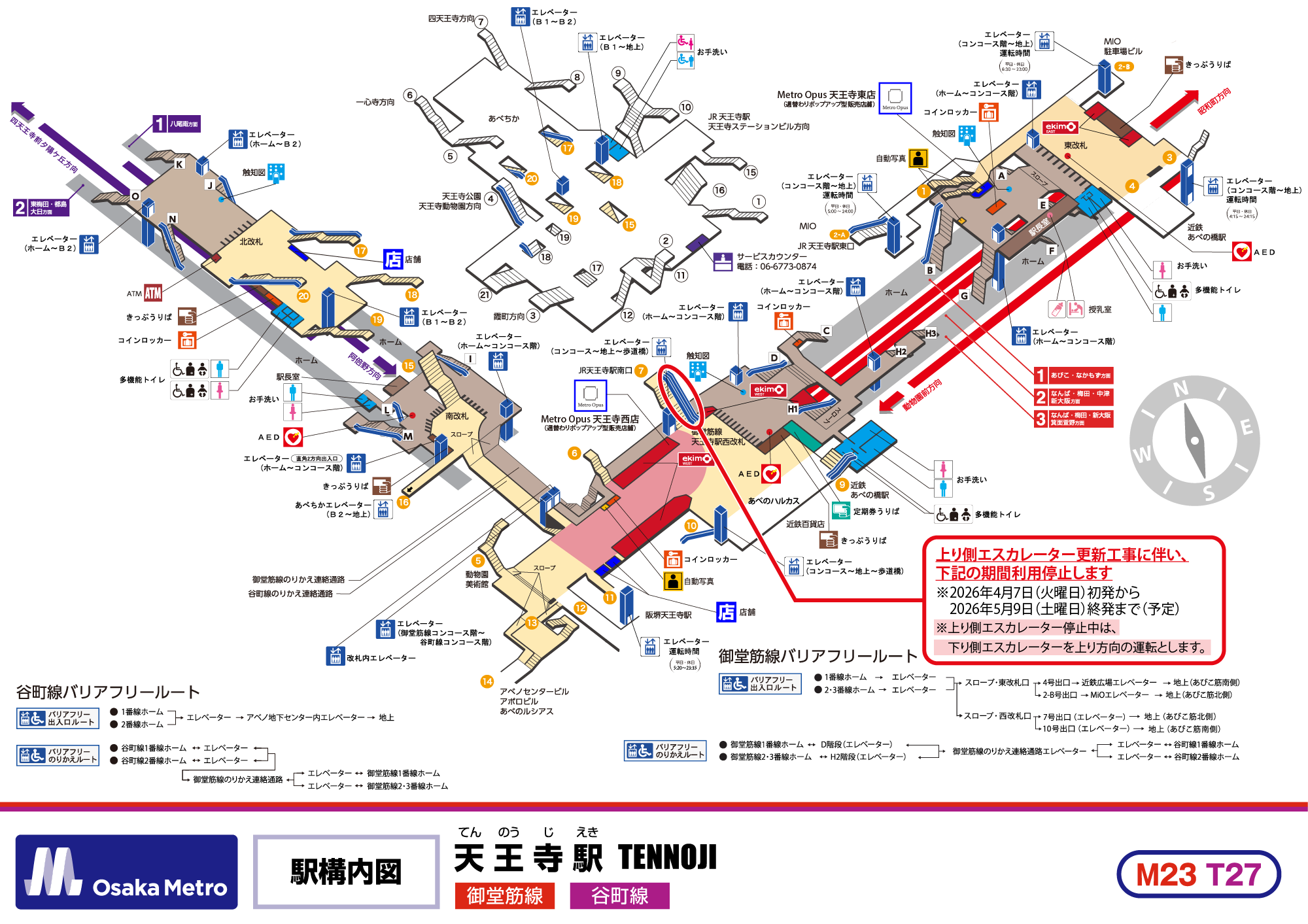 - 御堂筋線 天王寺駅 エスカレーター利用停止について