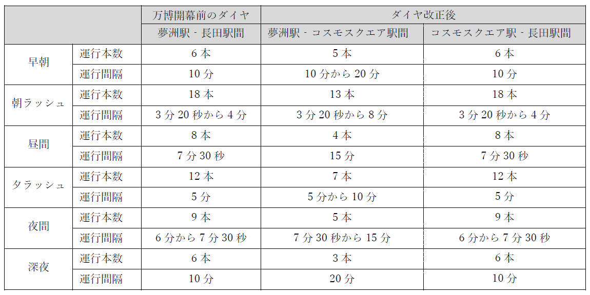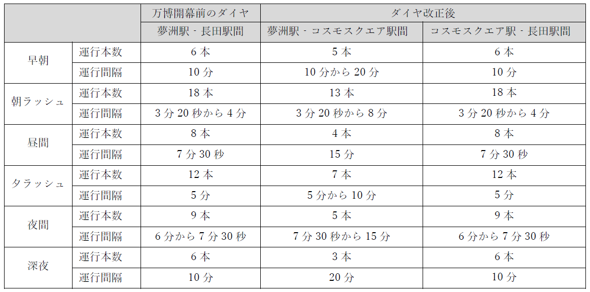 万博期間中ダイヤ | ダイヤ改正後 | |