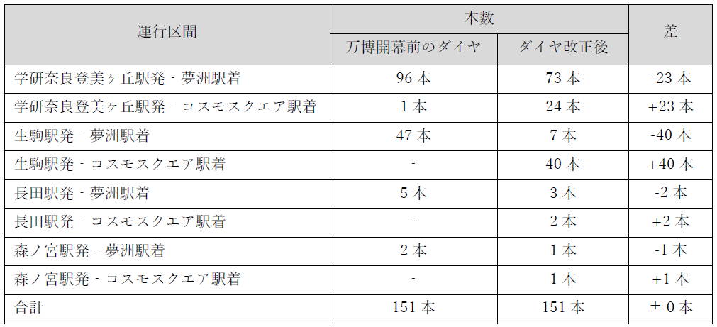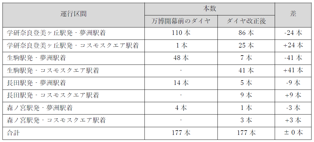 今回のダイヤ改正は、2025年大阪・関西万博閉幕後の需要に応じたダイヤに改正するものです。