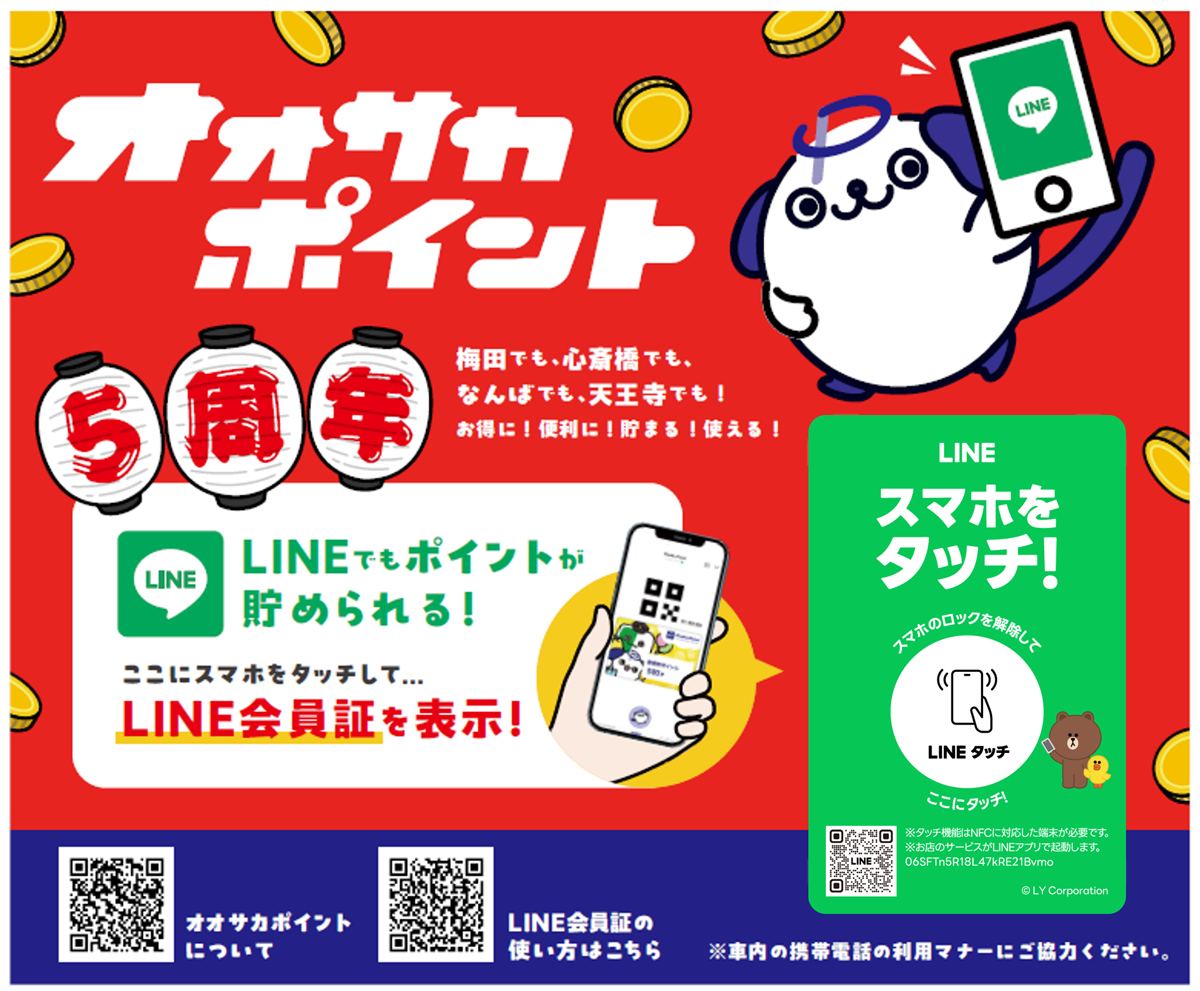 Osaka Metro と株式会社大阪メトロアドエラ(以下、「大阪メトロアドエラ」)は、Osaka PointのLINEの会員証の利用促進を目的に2026年1月9日(金曜日)から、駅構内や車内広告で「LINEタッチ」付き広告を掲出します。