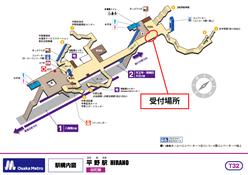 Osaka Metro 谷町線 平野駅 1、2号出入口(スタート) ⇒ 旧南海平野線平野駅プロムナード ⇒ 大念佛寺 ⇒ 駒川商店街 ⇒ 長居公園 ⇒ 長居東の遺跡 ⇒ 寺岡砦跡 ⇒ 住吉大社(ゴール) ⇒ 南海住吉大社駅