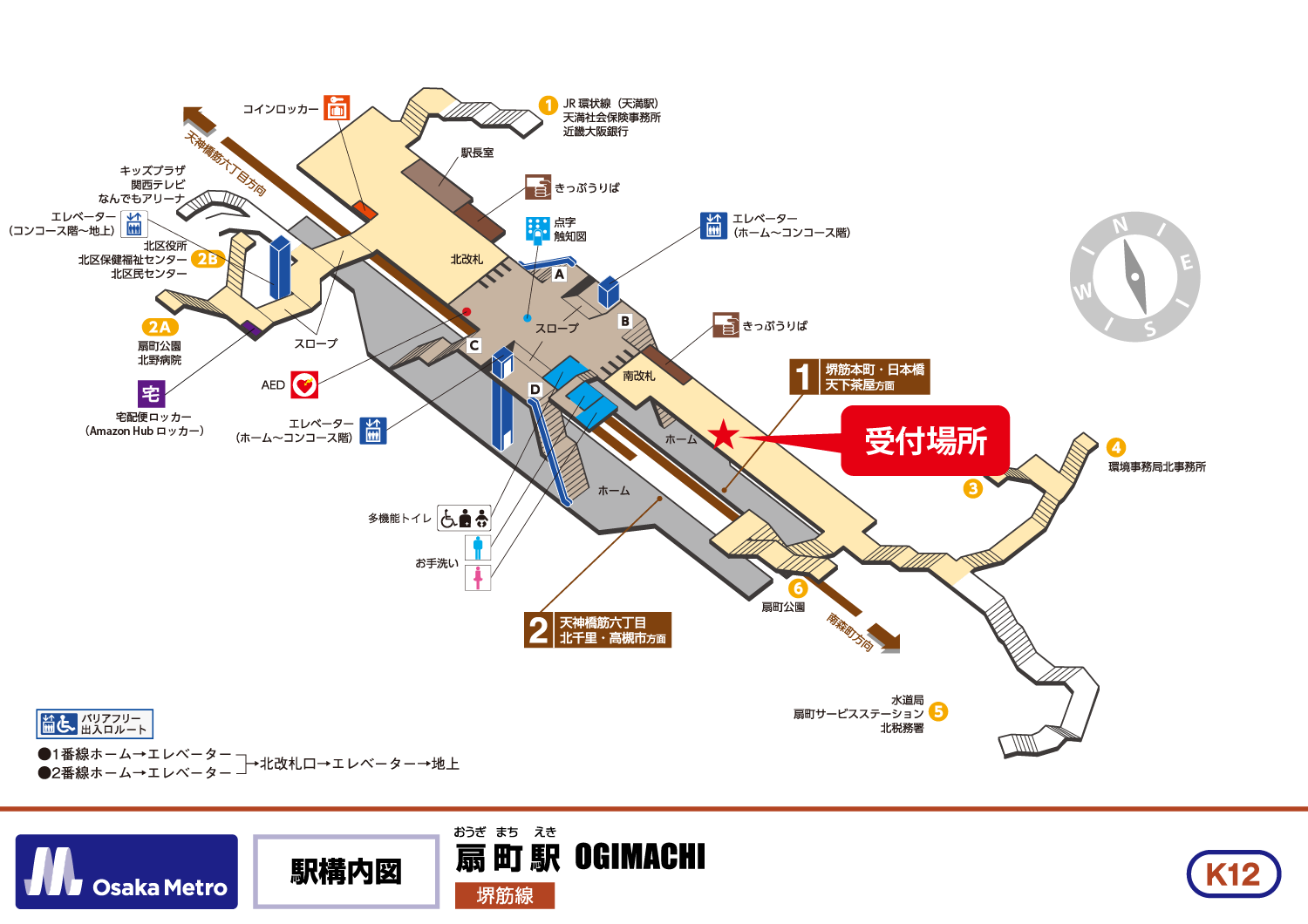 Osaka Metro 堺筋線 扇町駅 南改札外コンコース